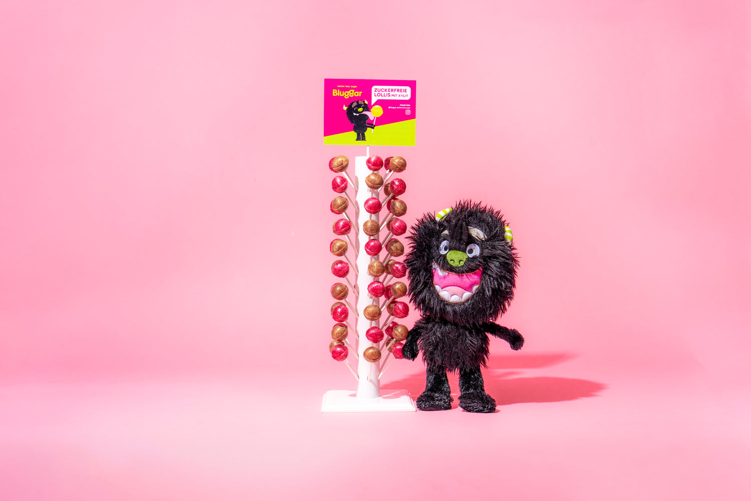 Mit dieser Idee im Kopf bin ich vor 2 Jahren in die Entwicklung gestartet. Und mit dieser Vision sollen viele verschiedene Produkte in der Bluggar-Welt ihren Platz finden. Den Startschuss gibt der Bluggar-Lolli, unser Hero, der Liebling aller Kinder.